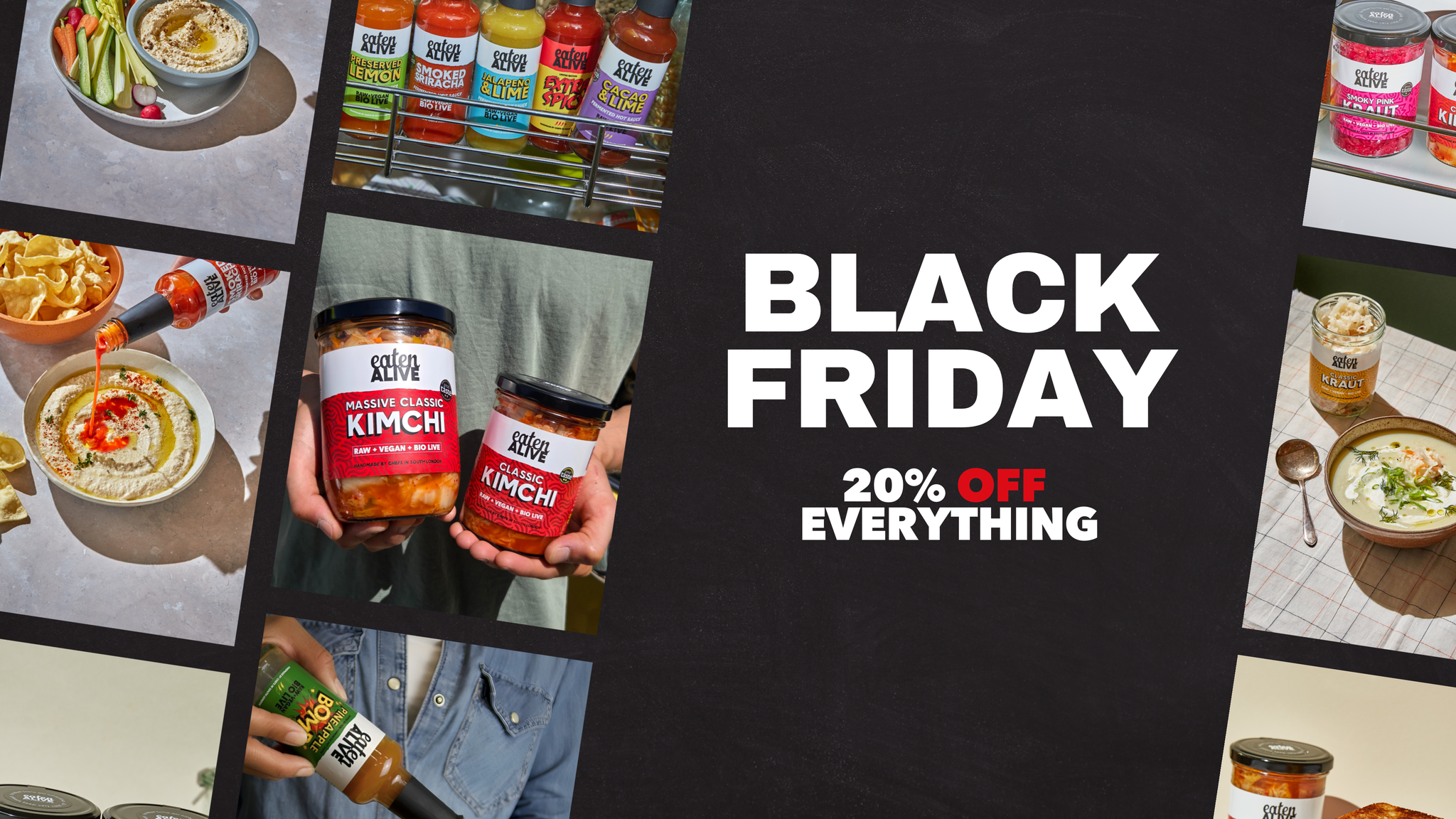 Embark on a flavour-packed adventure with Eaten Alive's artisanal selection of kimchi, kraut, hot sauces, and pickles. Made in London, vegan, and totally delicious.